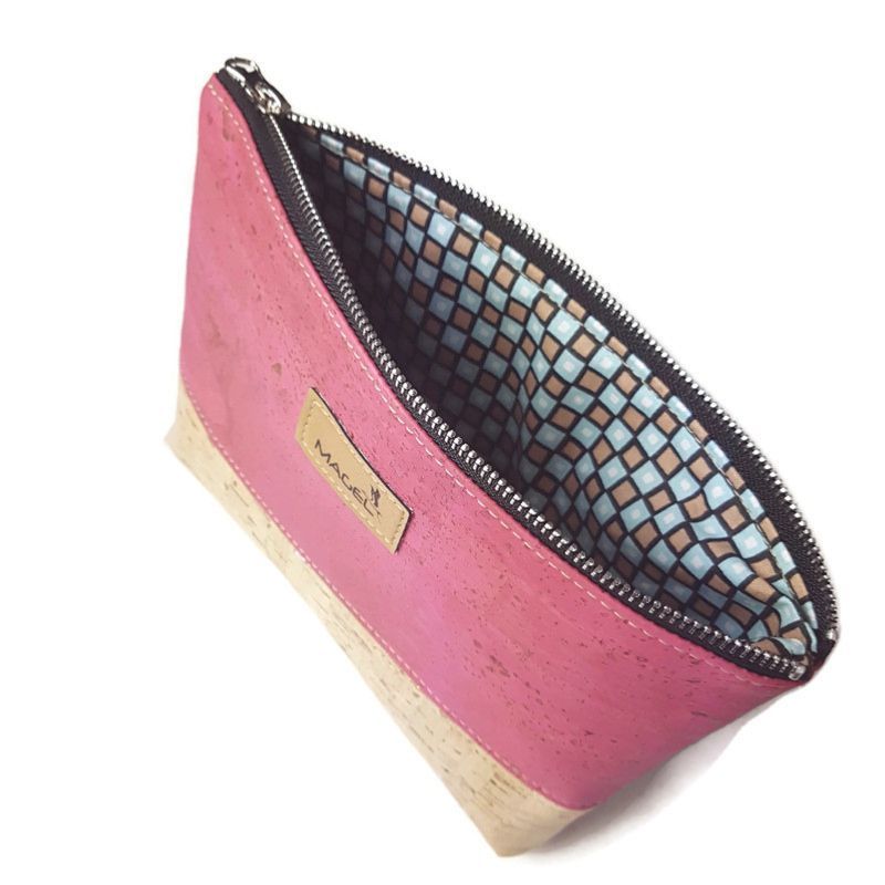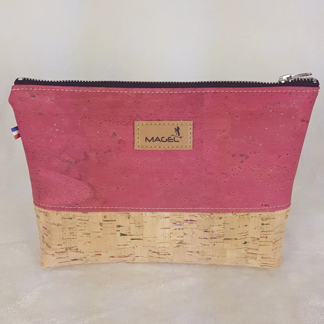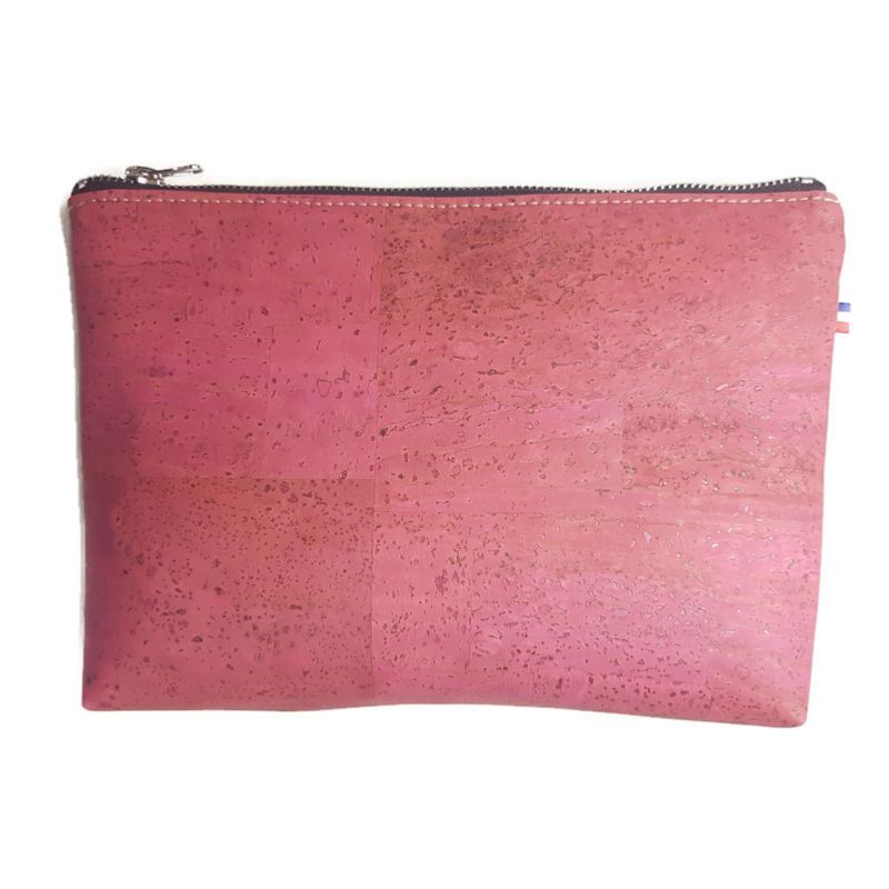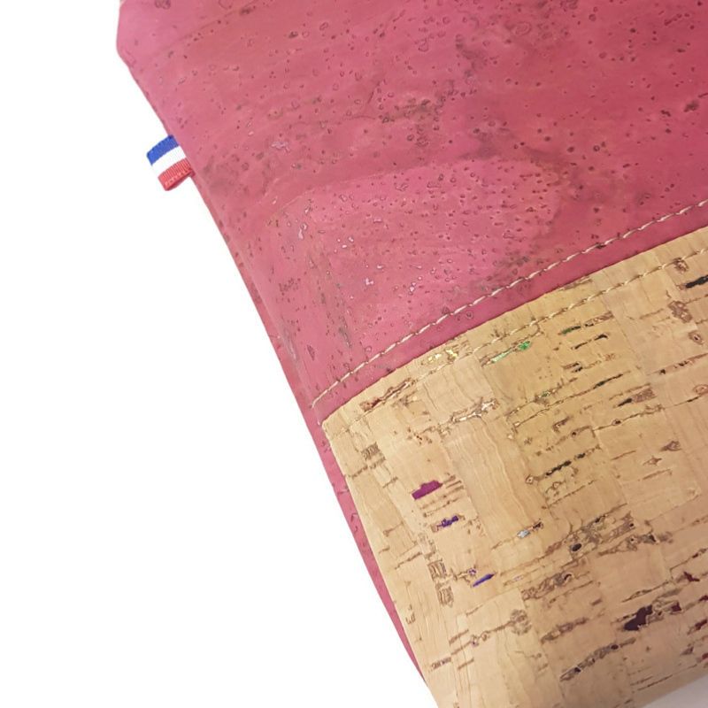 Pochette Lana en liège bouchon multicolore et fuschia.