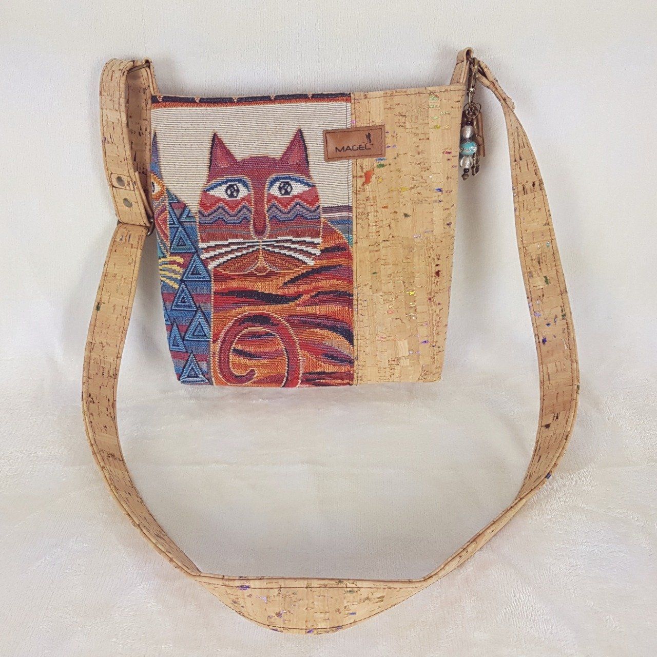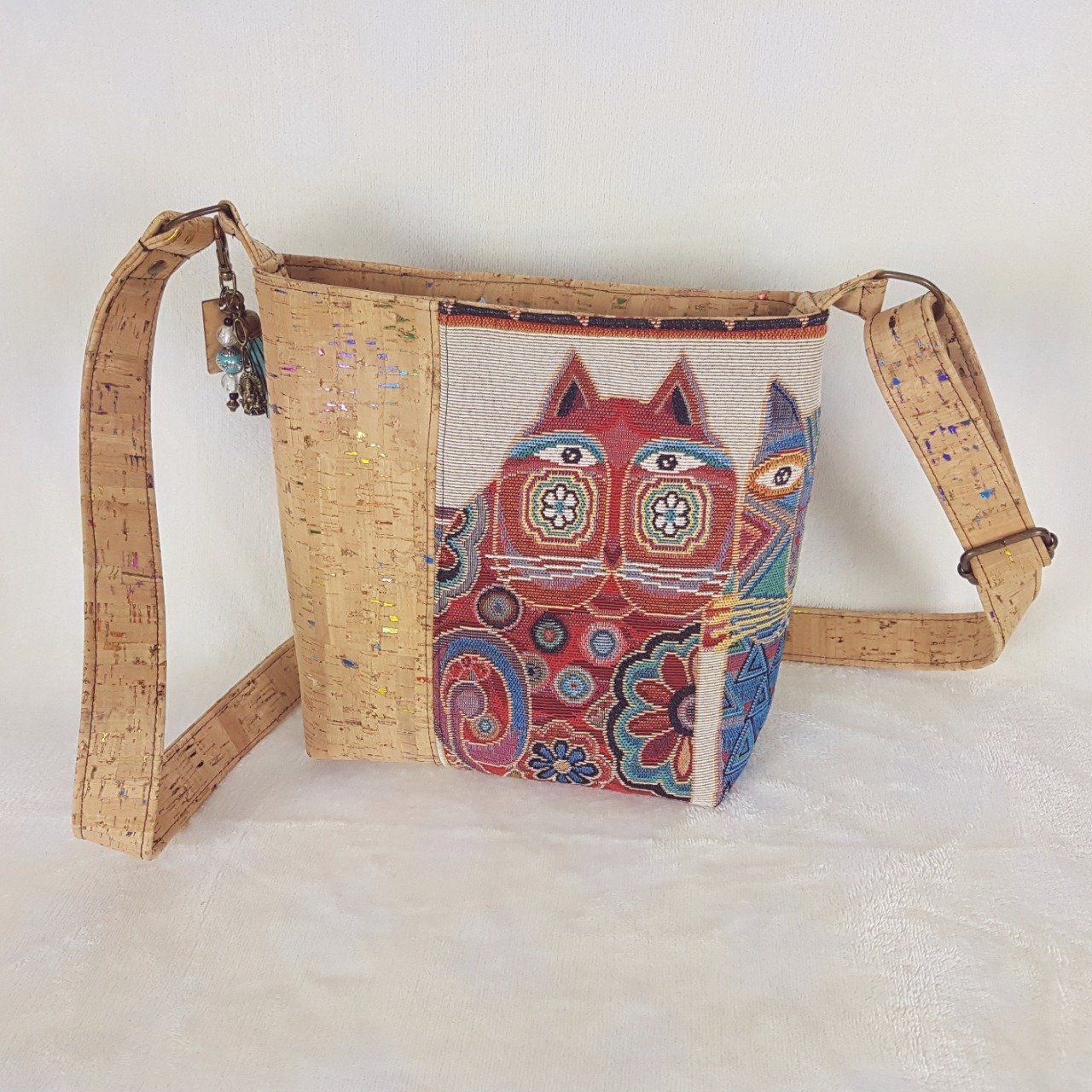 Sac à bandoulière Lina en liège naturel à reflet colorés et tissu jacquard.